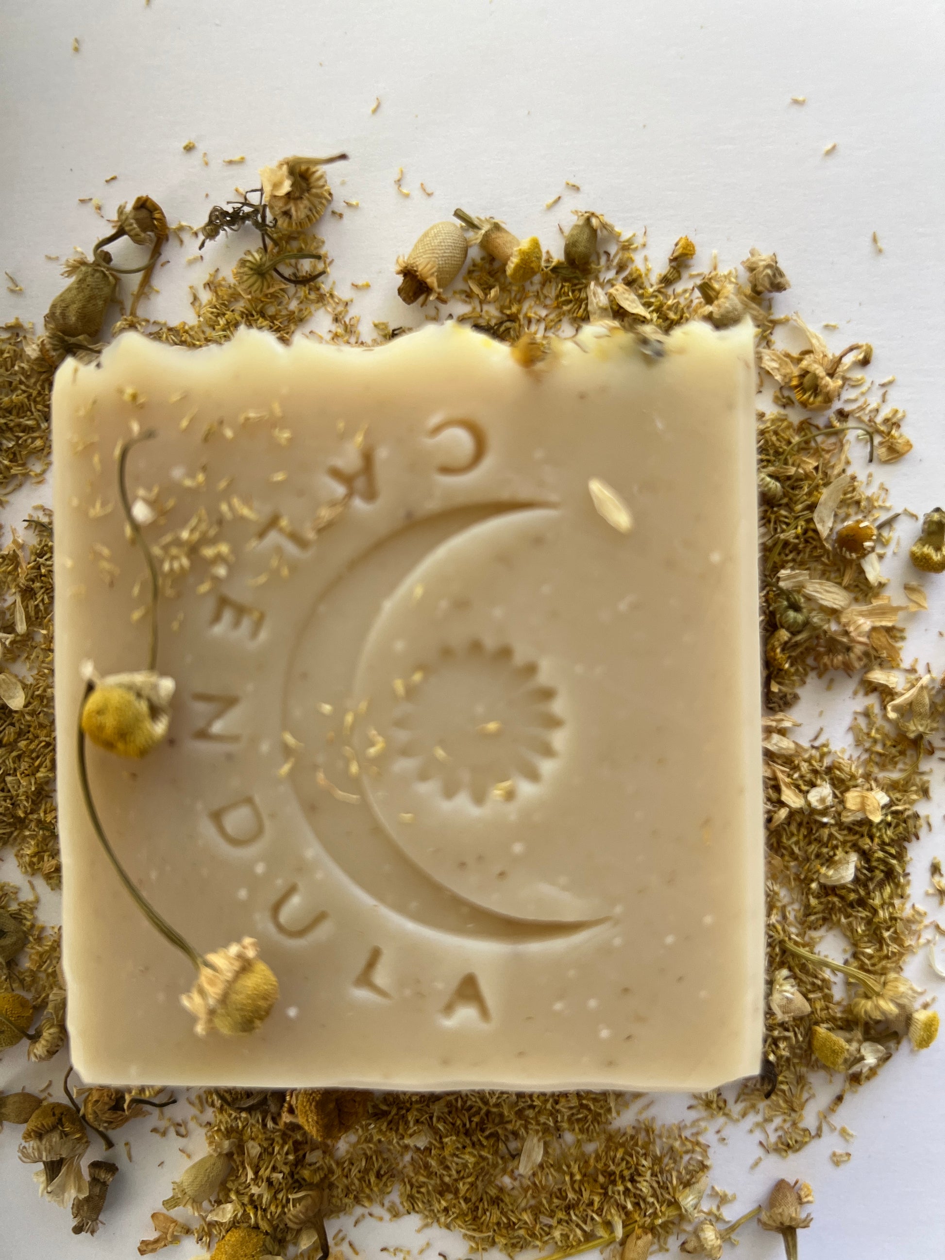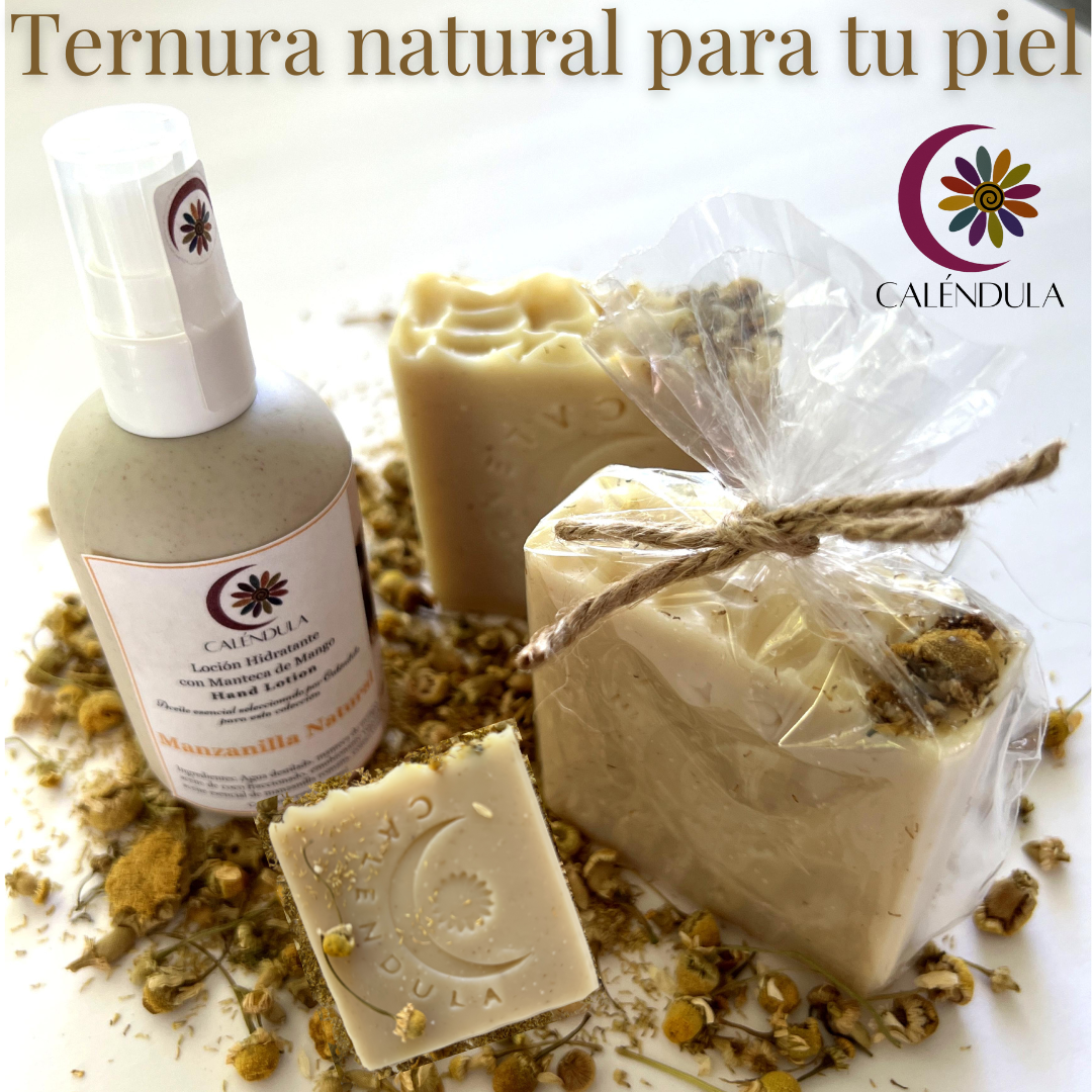 Un jabón 100% natural infusionado con manzanilla y elaborado con aceite esencial puro para brindar calma, suavidad y bienestar desde el primer contacto.