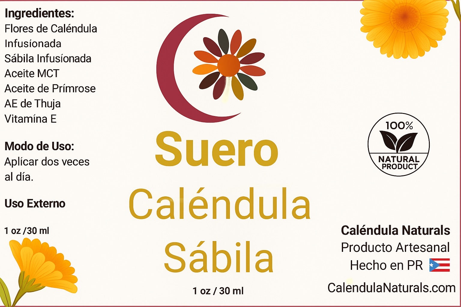 Suero de Caléndula con Sábila para la Nutrir la Piel